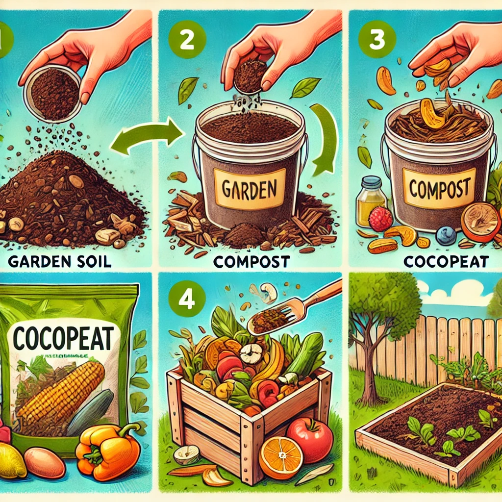 For optimal effects, combine garden soil, compost, and cocopeat. Cocopeat holds onto moisture, while compost adds vital nutrients to the soil. Compost can be made at home with dry leaves, fruit leftovers, and vegetable peels.